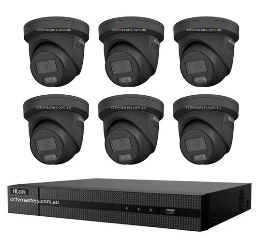 HiLook 6MP Kit 6x IPC-T269-MU/SL All in One Full-Color Camera with Blue Red Strobe Audio, 8CH 4K NVR