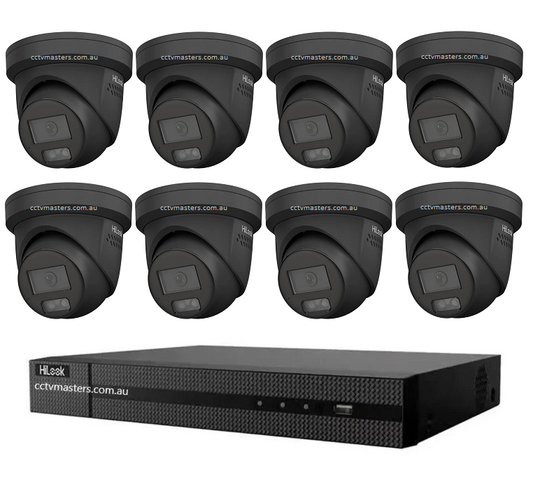 HiLook 6MP Full-Color Kit 8x IPC-T269-MU/SL All in One Full-Color Camera with Blue Red Strobe Audio, 8CH 4K NVR