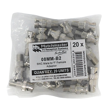 BNC Male to 'F' Female Adaptor (20 Pack)
