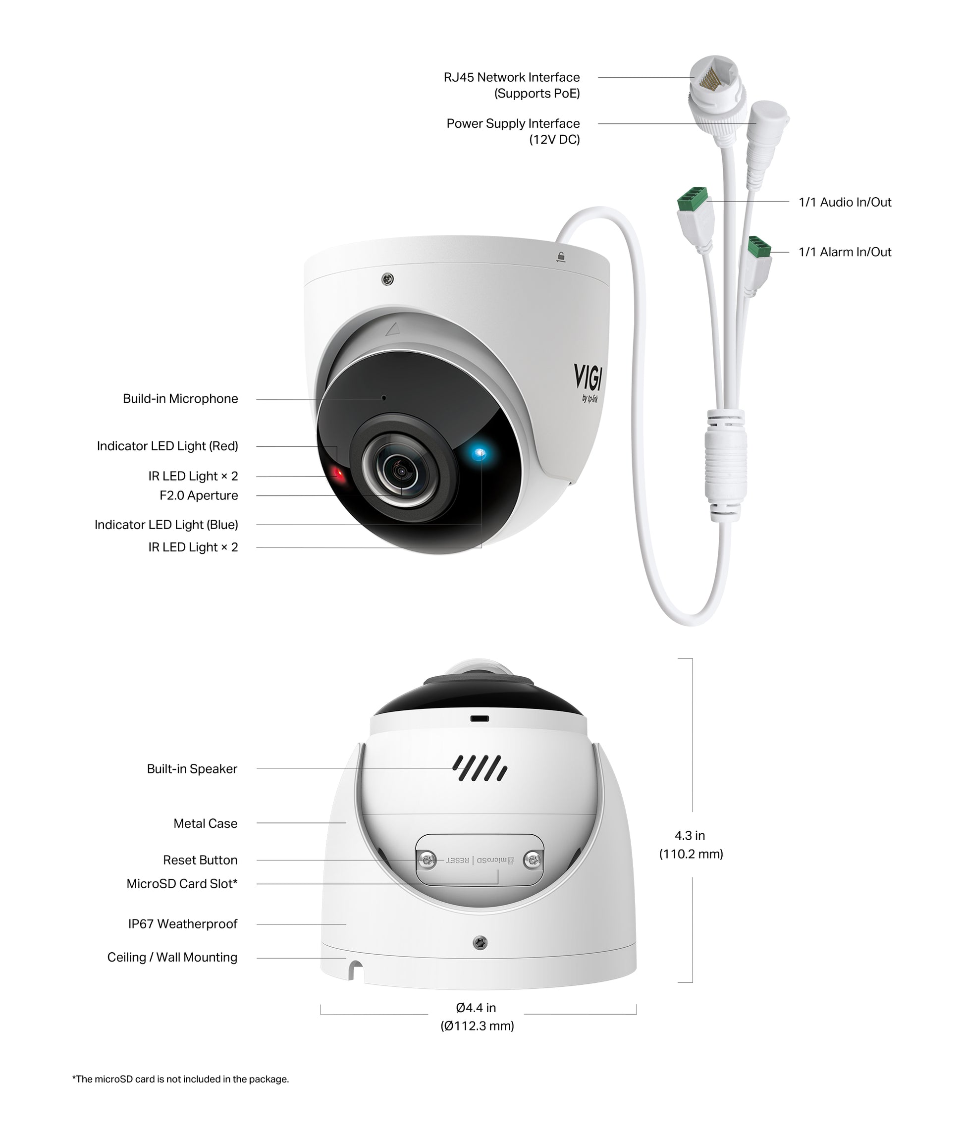 - 4K (8MP) Ultra HD and IR Range Up to 65.62 ft (20 m)