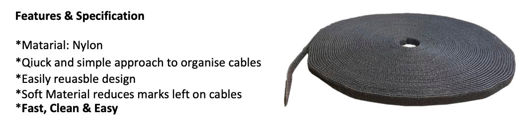 VELCRO Wrap, Black Red Yellow Hook & Loop Tape, 10mm x 25m